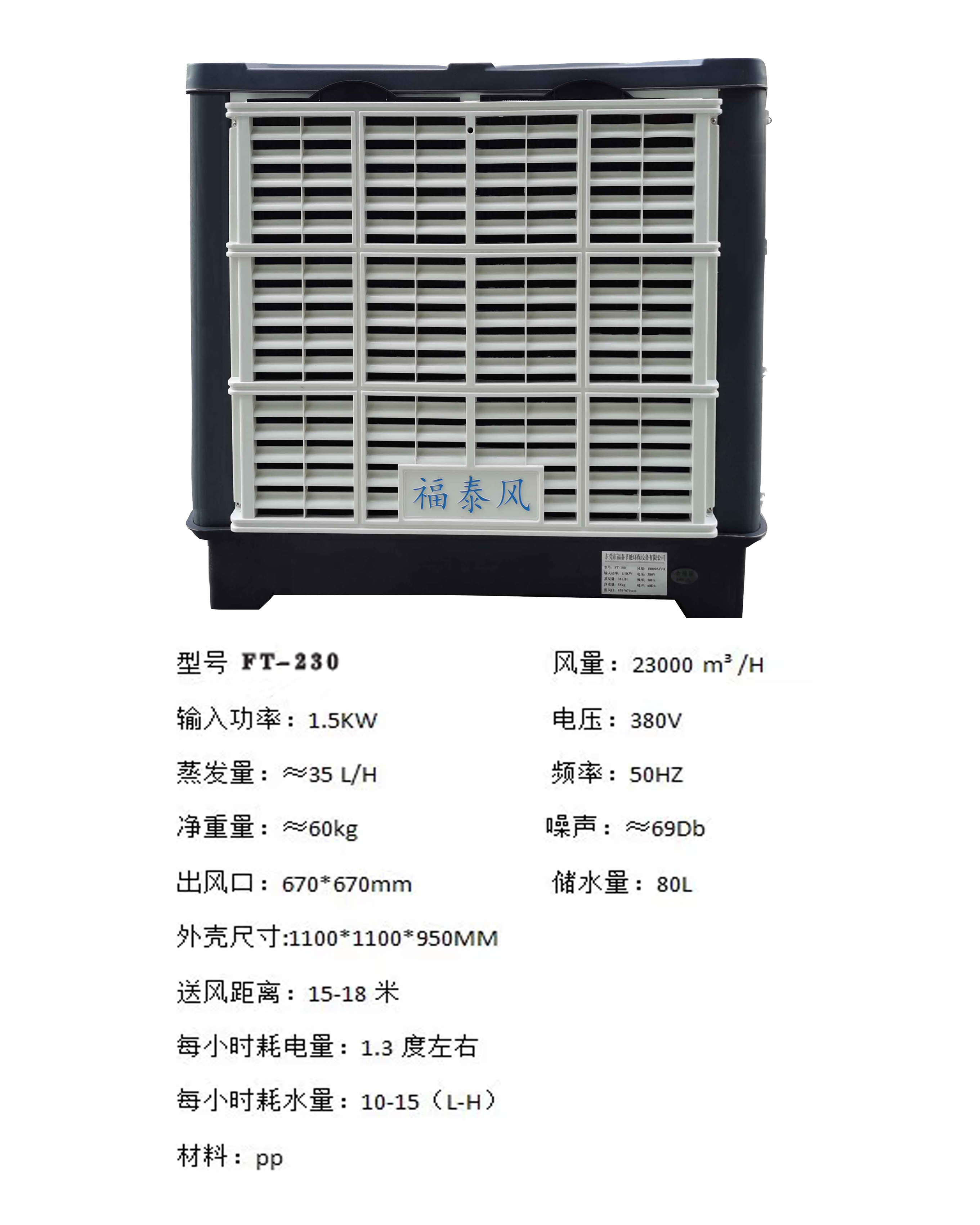 福泰环保空调性能稳定在越炎热的天气下降温的效果越好。适用于开敞式及半开敞式环境,能够直接输送自然风及输送降温后的凉风。室外新鲜空气经福泰蒸发式冷气机过滤、降温后向室内源源不断的大量输送,将室内带有异味、粉尘和混浊闷热的空气排出室外,同时兼顾换气降温及增加空气含氧量等多种效果。